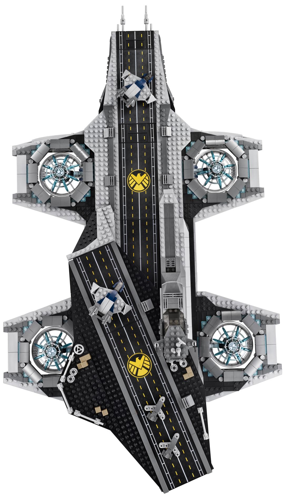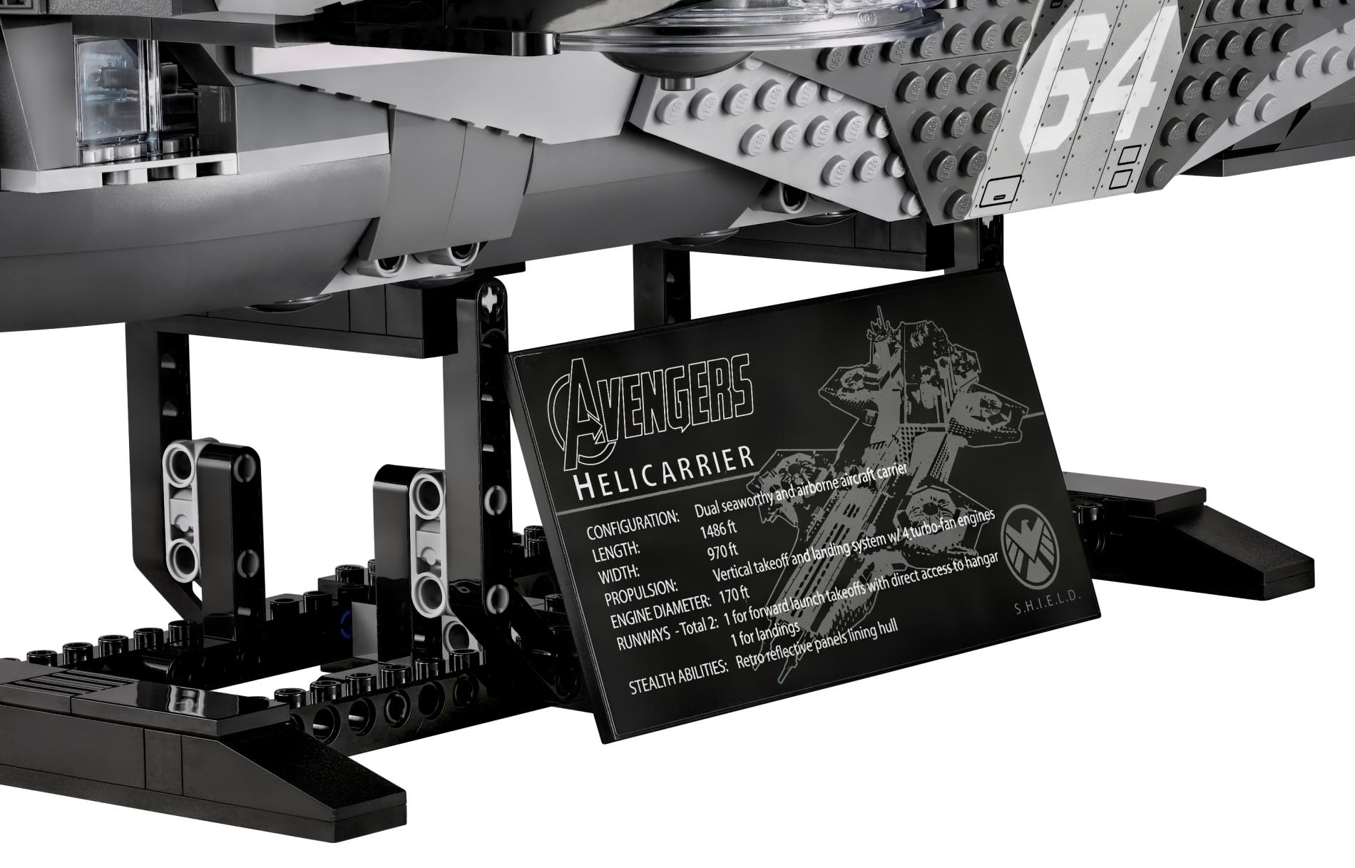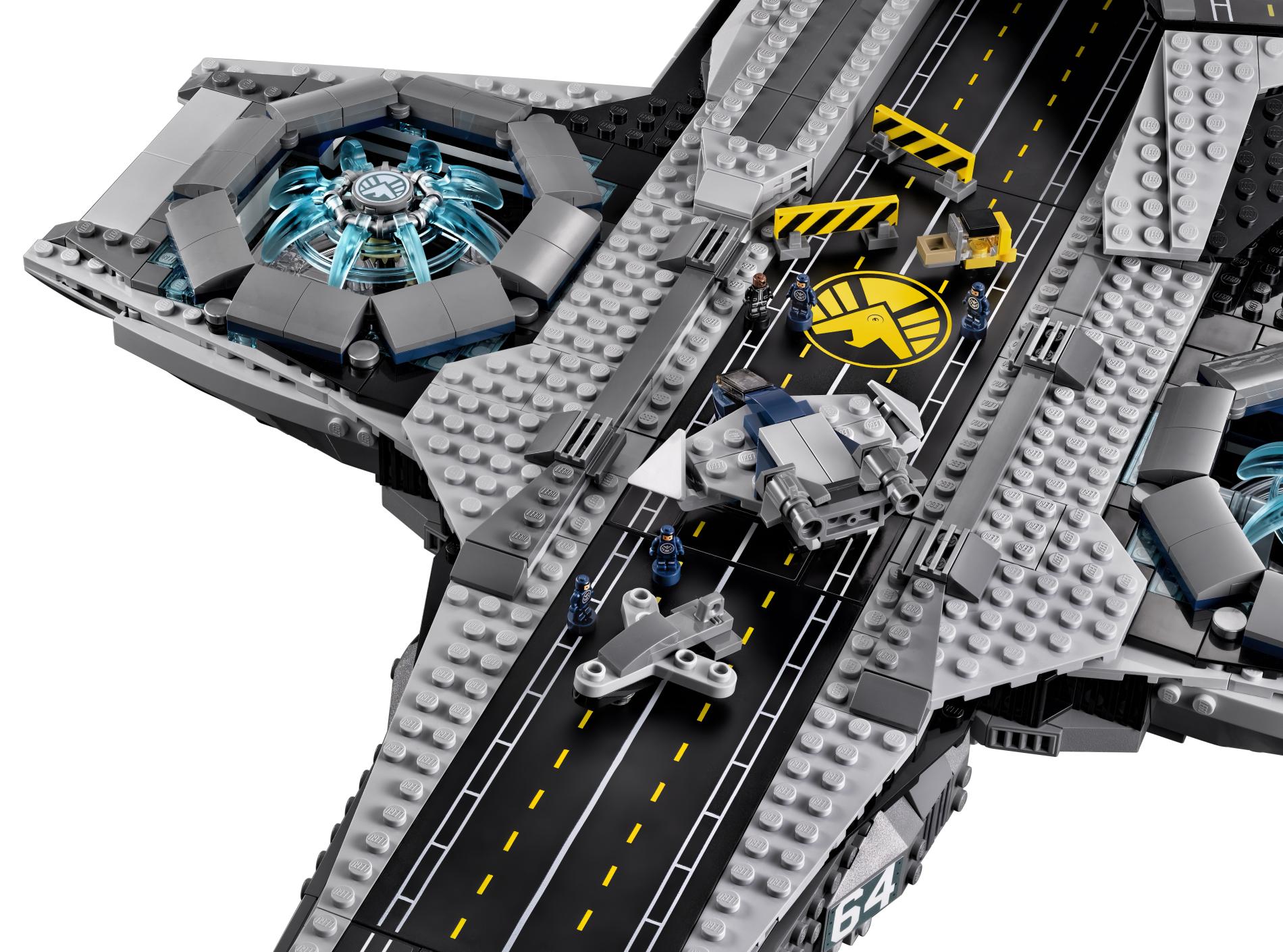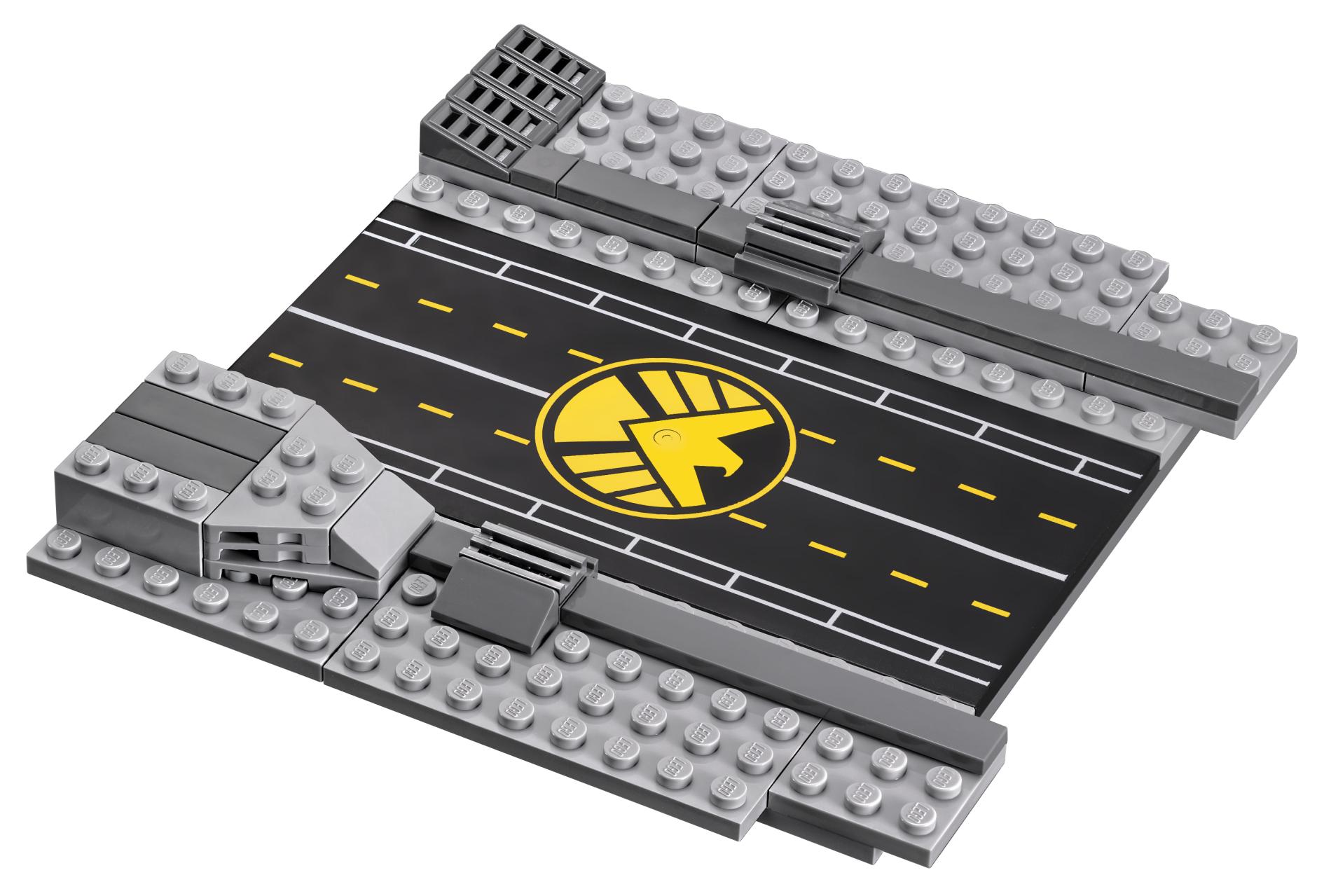 | 1 X Tile 8 x 16 with Bottom Tubes with Avengers Helicarrier Pattern (Sticker) - Set 76042 | Black |   |  |