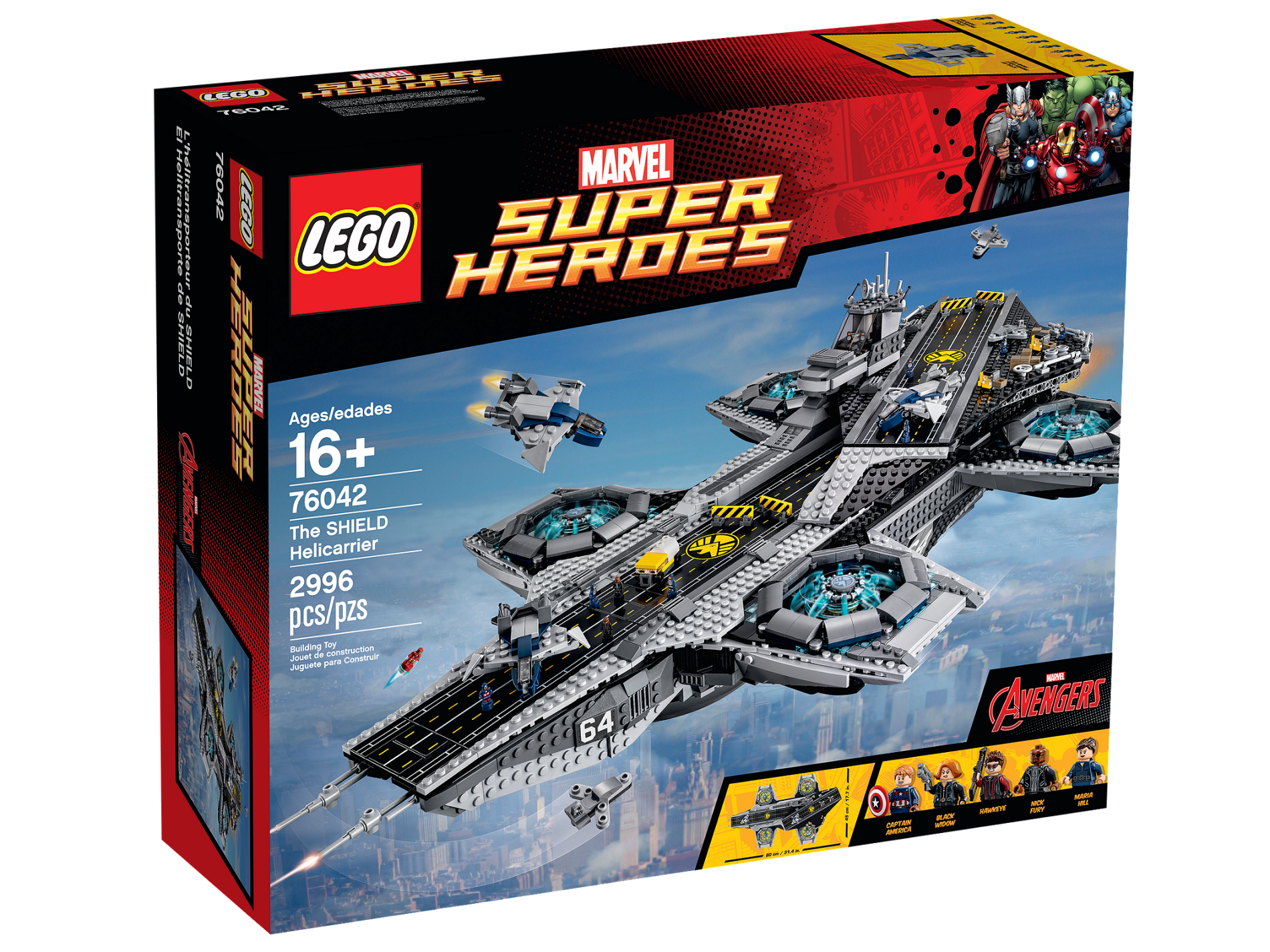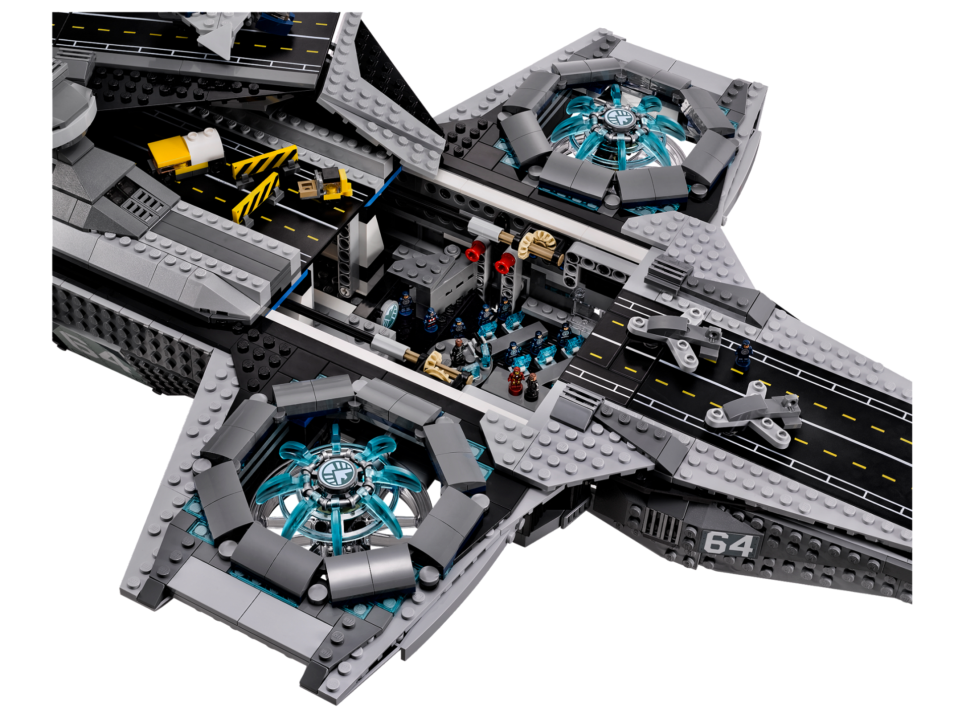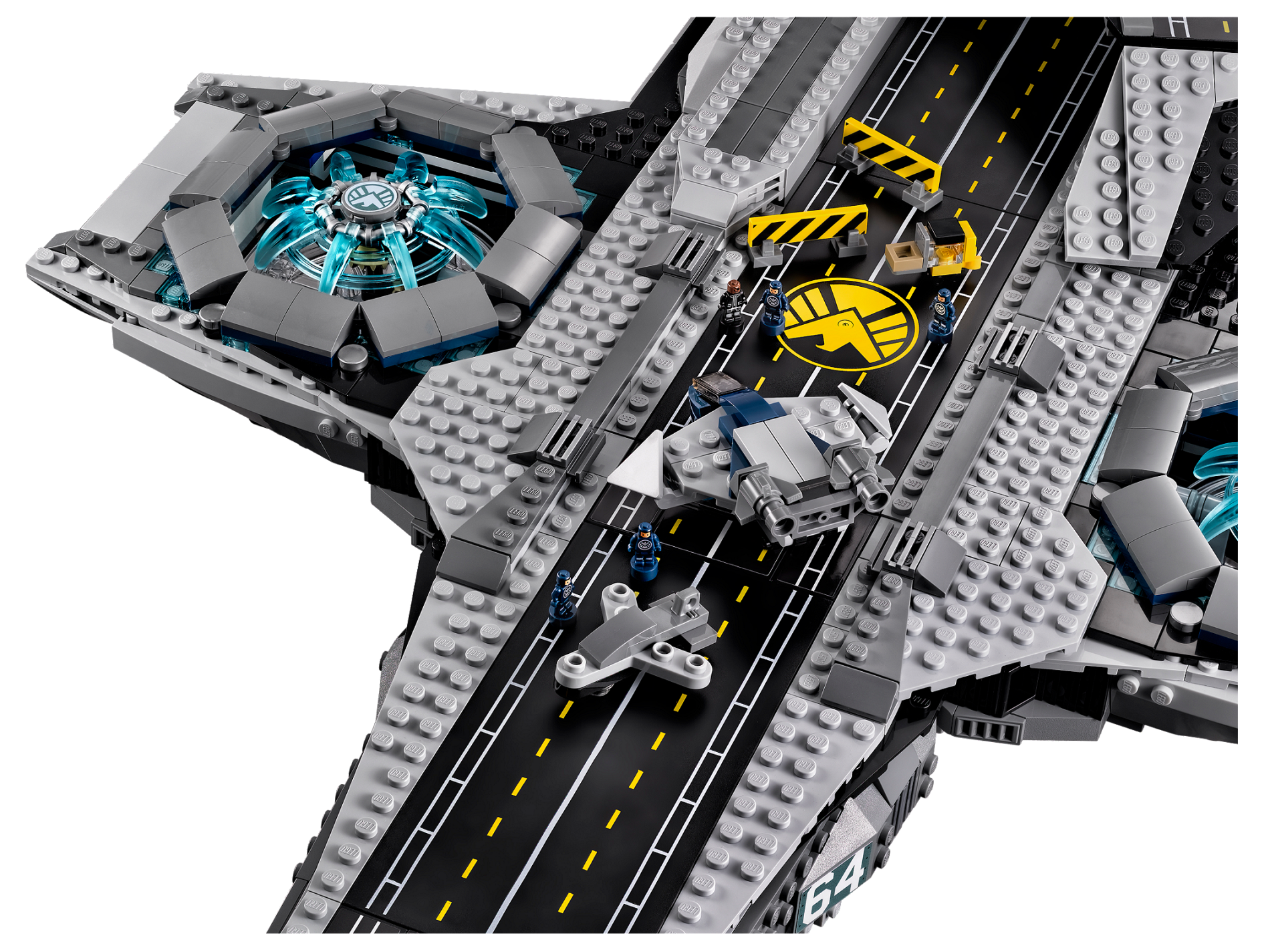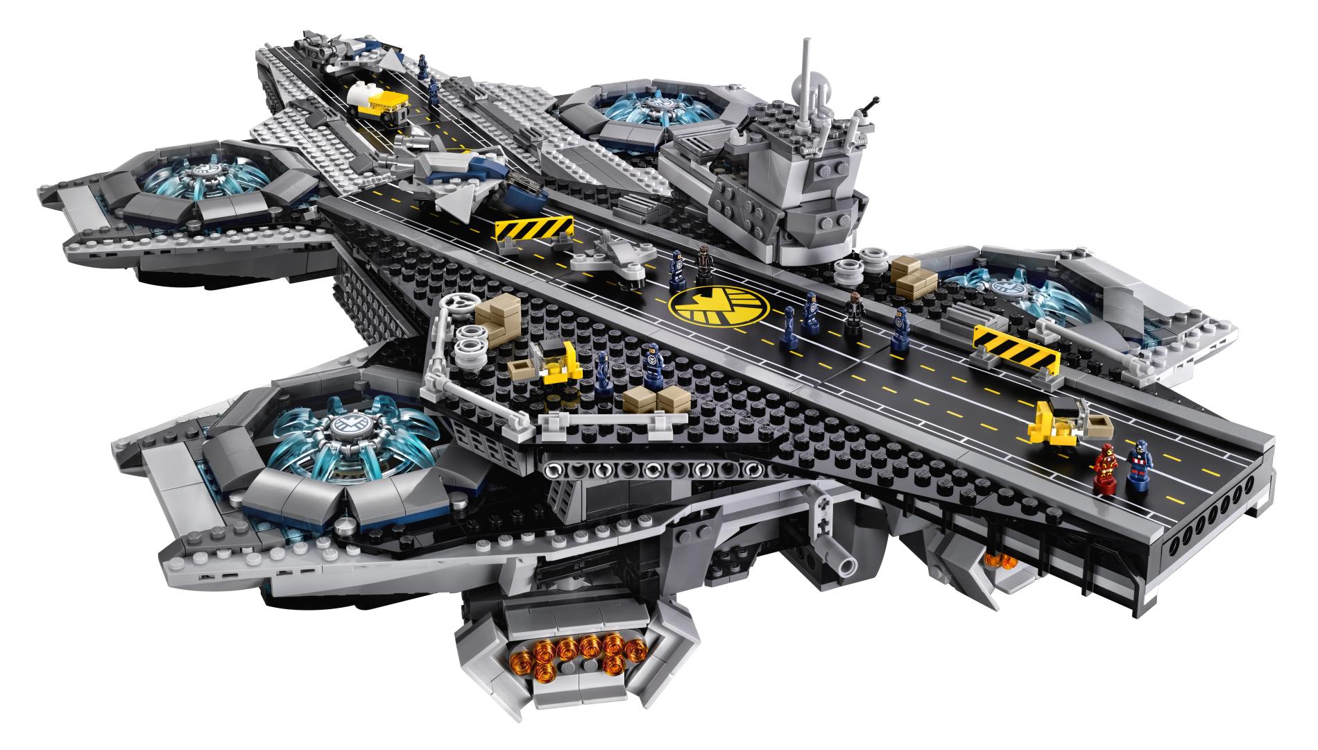 | 1 X Tile 8 x 16 with Bottom Tubes with Avengers Helicarrier Pattern (Sticker) - Set 76042 | Black |   |  |