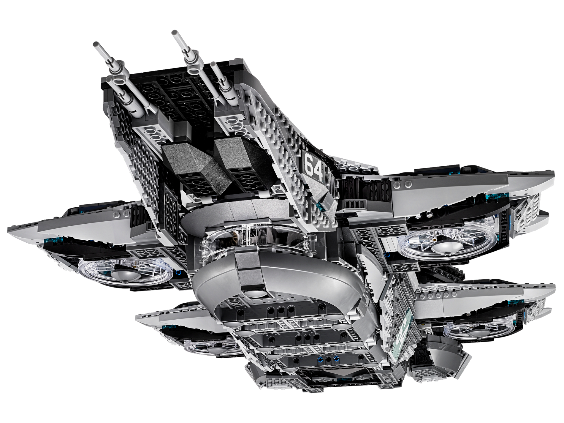 | 2 X Tile 6 x 6 with Bottom Tubes with White '64' on Metal Aircraft Panels with Rivets and Dark Bluish Gray Corners Pattern (Sticker) - Set 76042 | Light Bluish Gray |   |  |