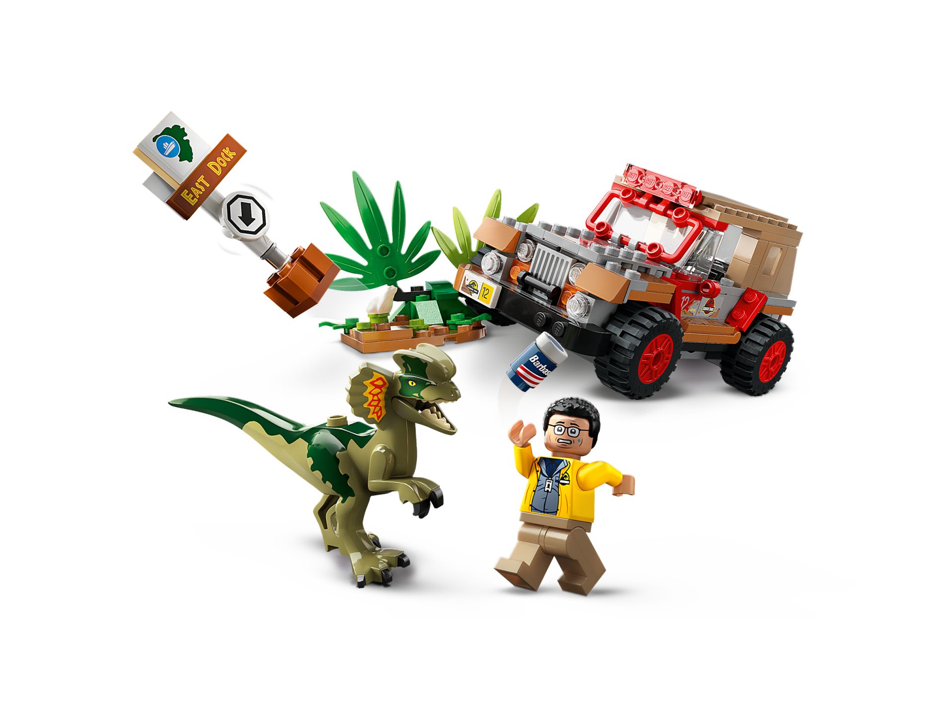 | 1 X Dinosaur Dilophosaurus Second Version with Flexible Rubber Tail, Bright Light Orange, Red and Dark Green Markings | Olive Green |   |  |