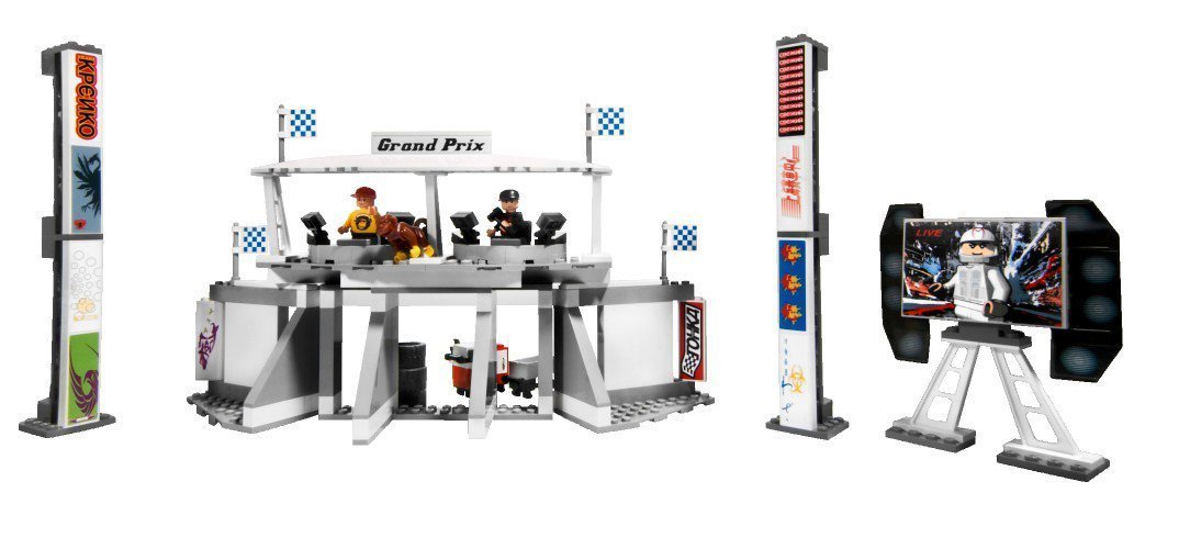 | 1 X Brick 1 x 8 with 'Grand Prix' and Speed Racer Logo Pattern (Stickers) - Set 8161 | White |   |  |