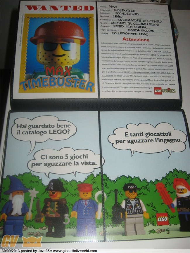 Но уже к в 90е годы на арену выходит Макс Таймбастер - озорник, который прыгает между страницами каталога LEGO, собирая по пути разные детали.