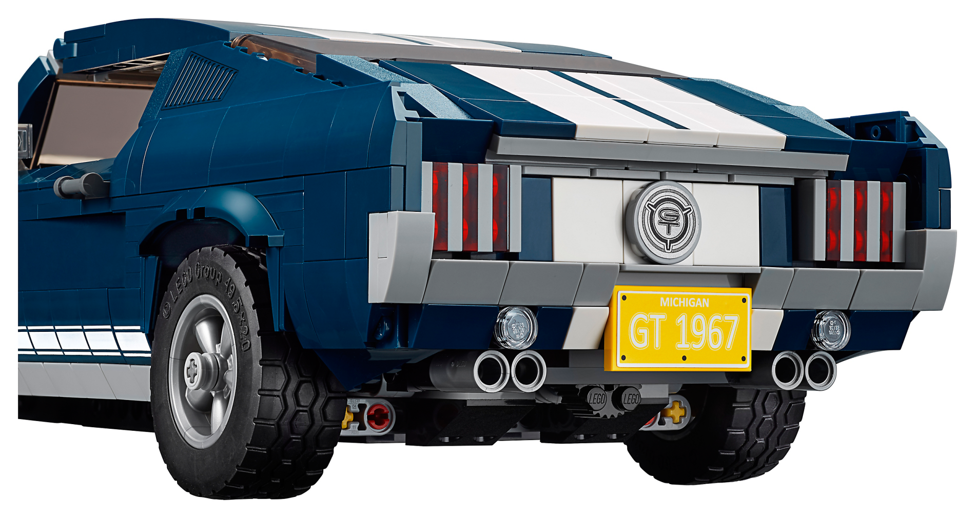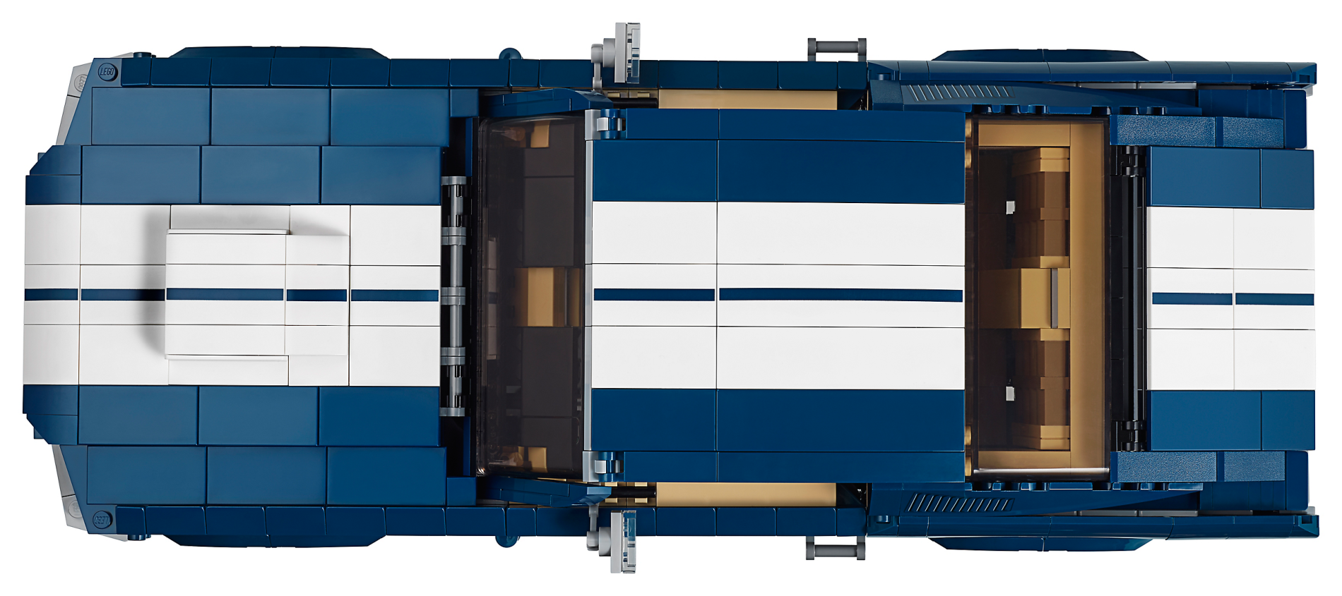 | 2 X Slope, Curved 2 x 4 x 2/3 No Studs with Bottom Tubes with 'GT' and White Stripes Pattern | Dark Blue |   |  |