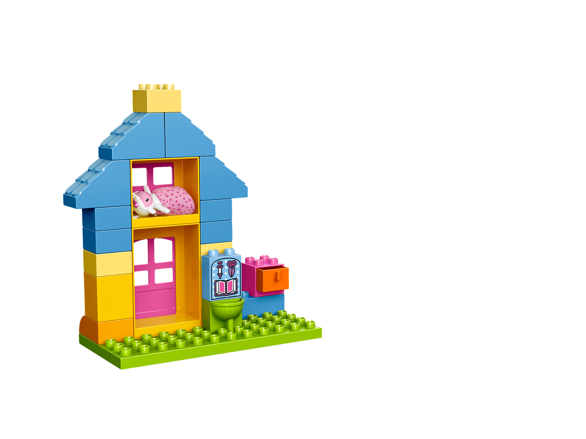 | 1 X Duplo, Brick 1 x 2 x 2 with Scissors, Book and Syringe Pattern | Bright Light Blue |   |  |