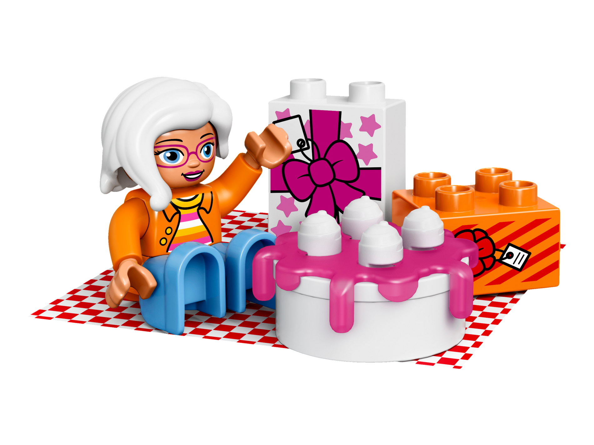 | 1 X Duplo, Brick 2 x 2 with Present / Gift with Bow and Stripes Pattern | Orange |   |  |