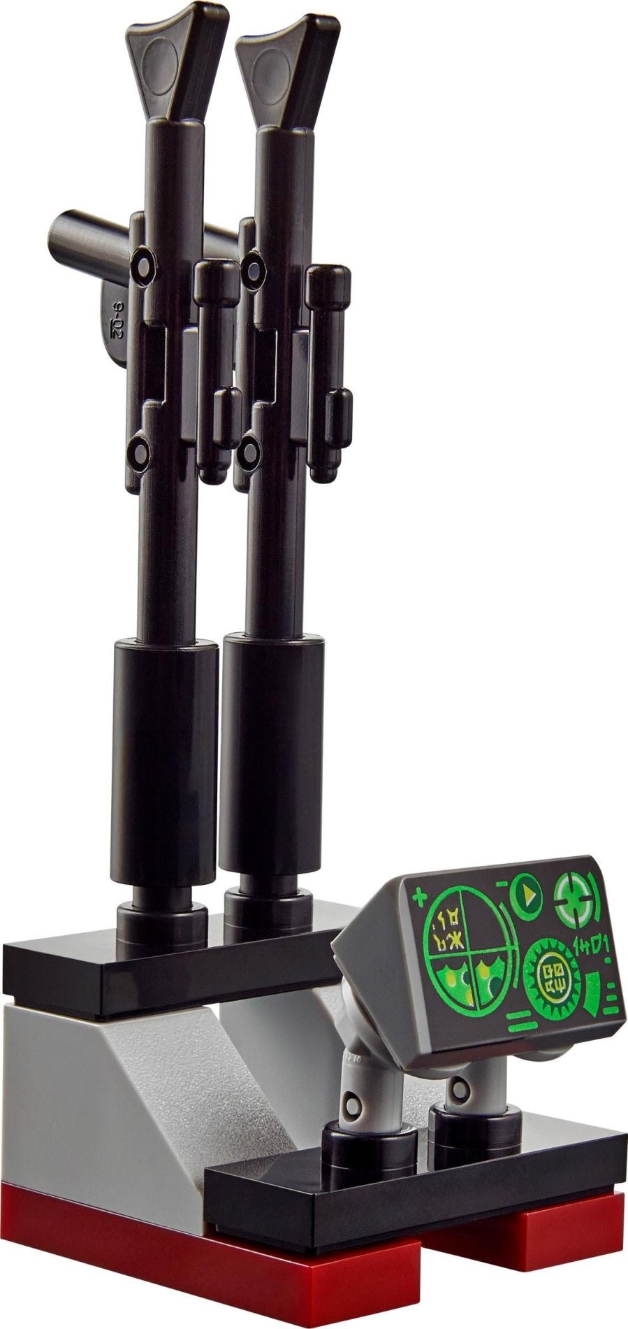 | 2 X Tile 1 x 2 with Groove with SW Dark Red Target Screen, Dark Red and Silver Buttons Pattern | Dark Bluish Gray |   |  |