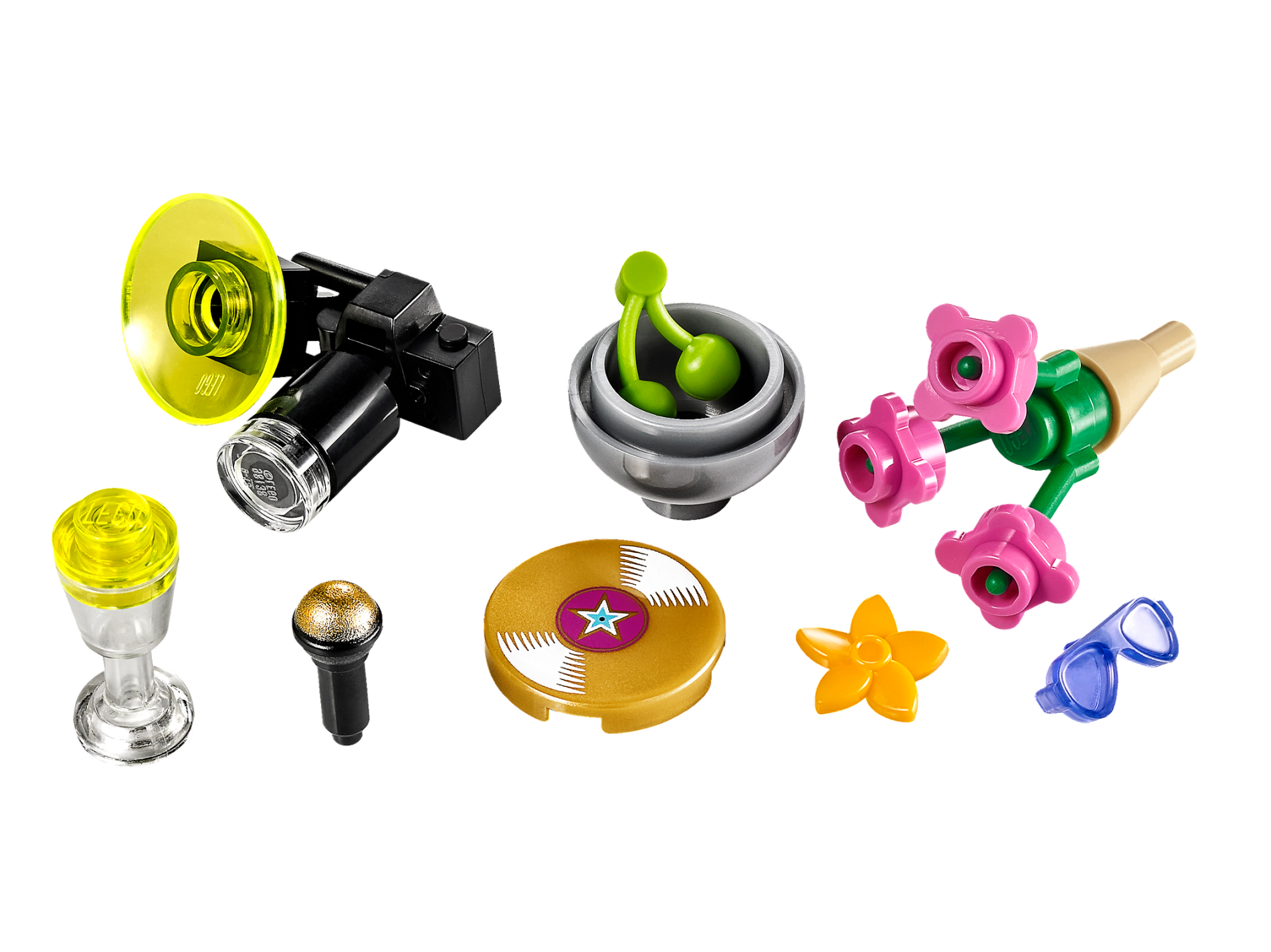 | 1 X Minifig, Utensil Microphone with Metallic Gold Top Half Screen Pattern | Black |   |  |