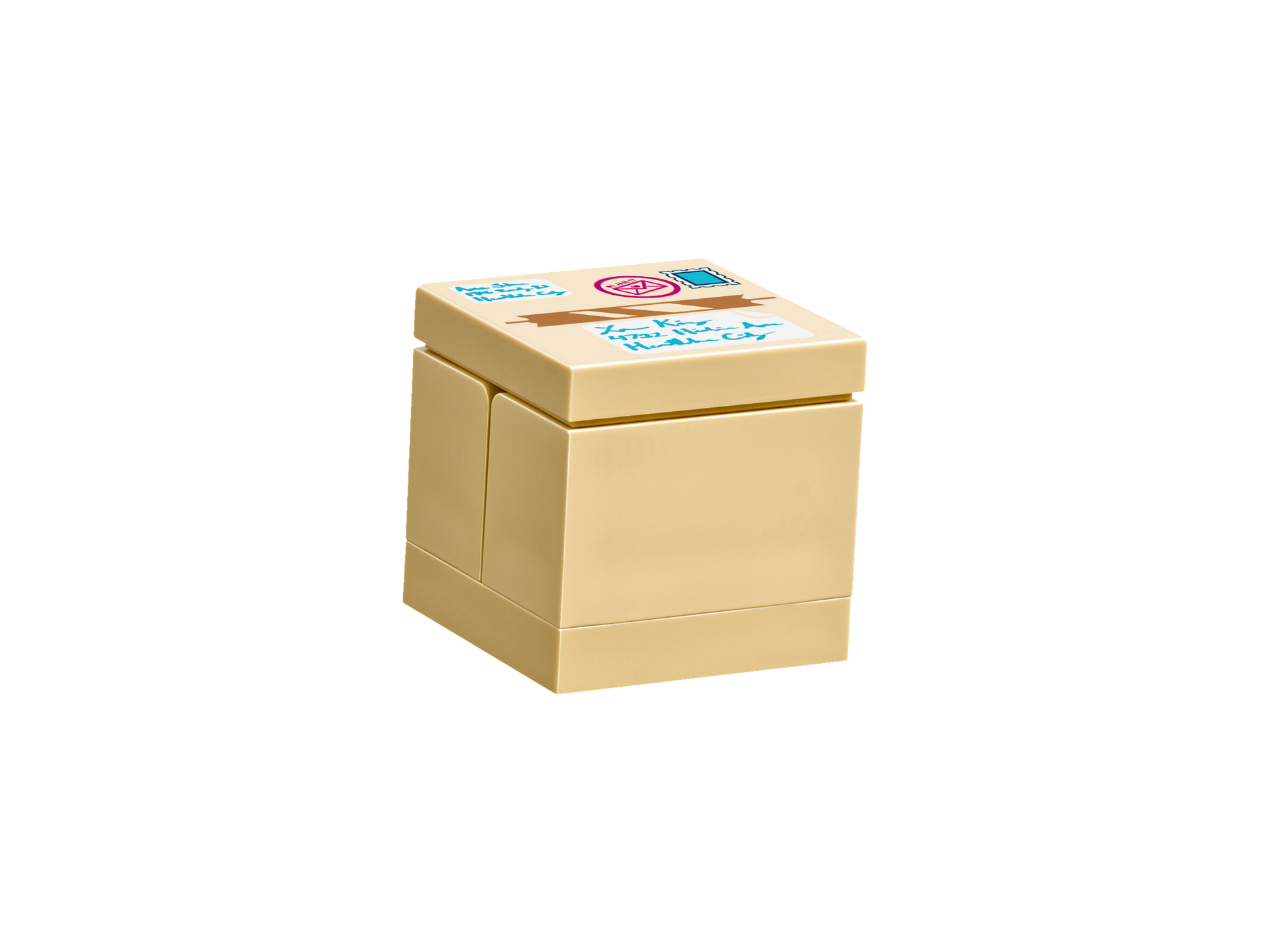 | 1 X Tile, Modified 2 x 2 Inverted with Package Box Top with Postage Stamp, Packing Tape and Address Labels Pattern | Tan |   |  |