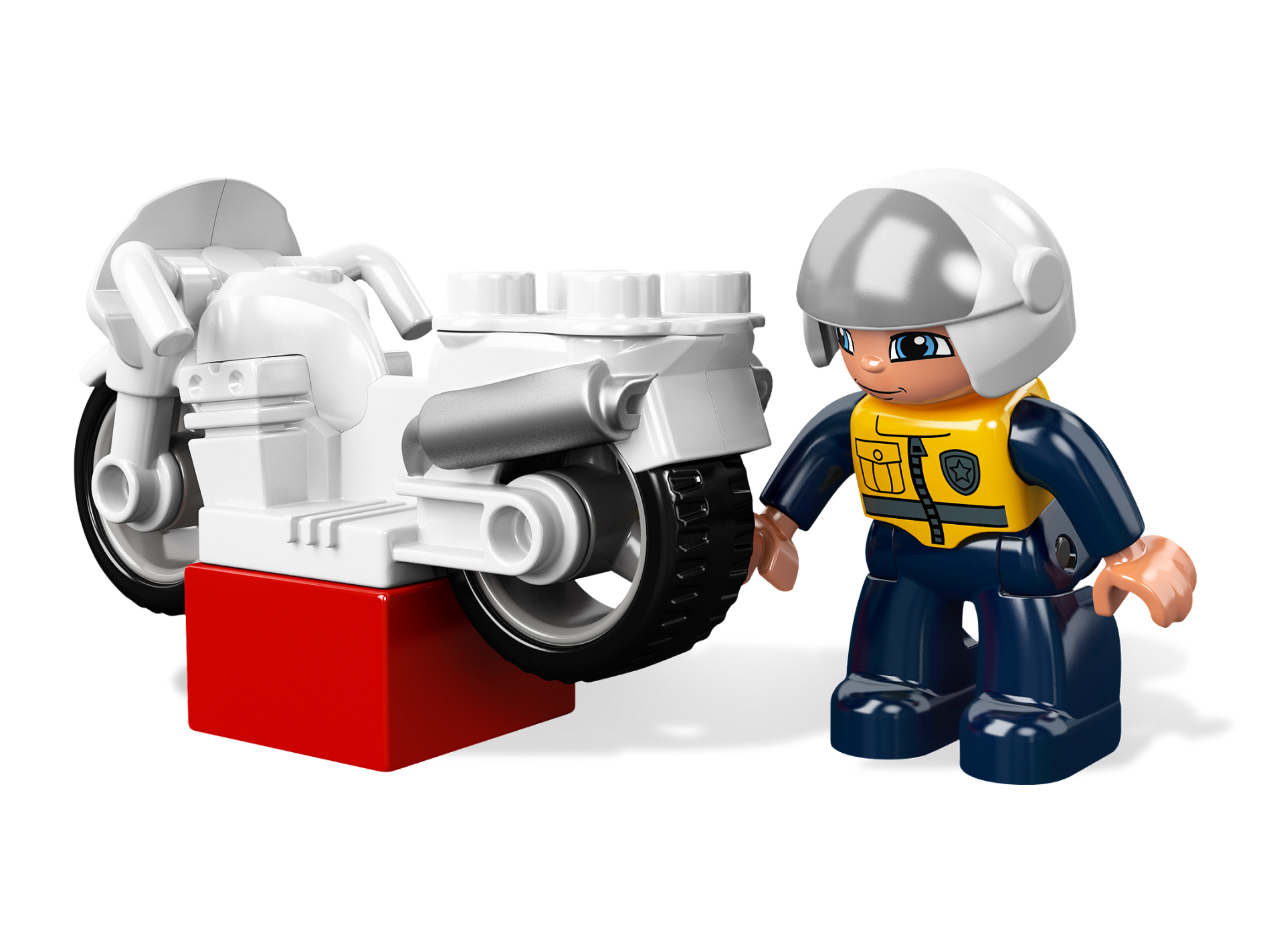 Duplo Motorcycle with Rubber Wheels and Headlights and Blue 'POLICE' Pattern