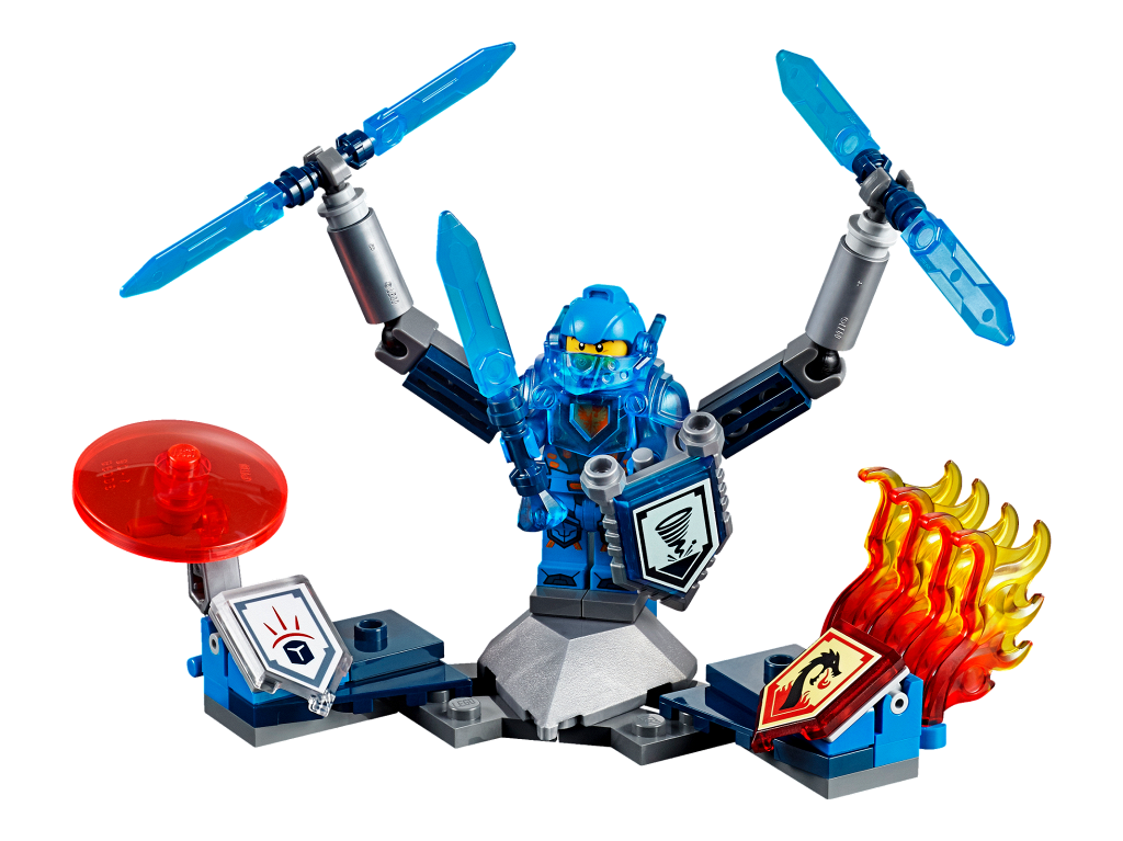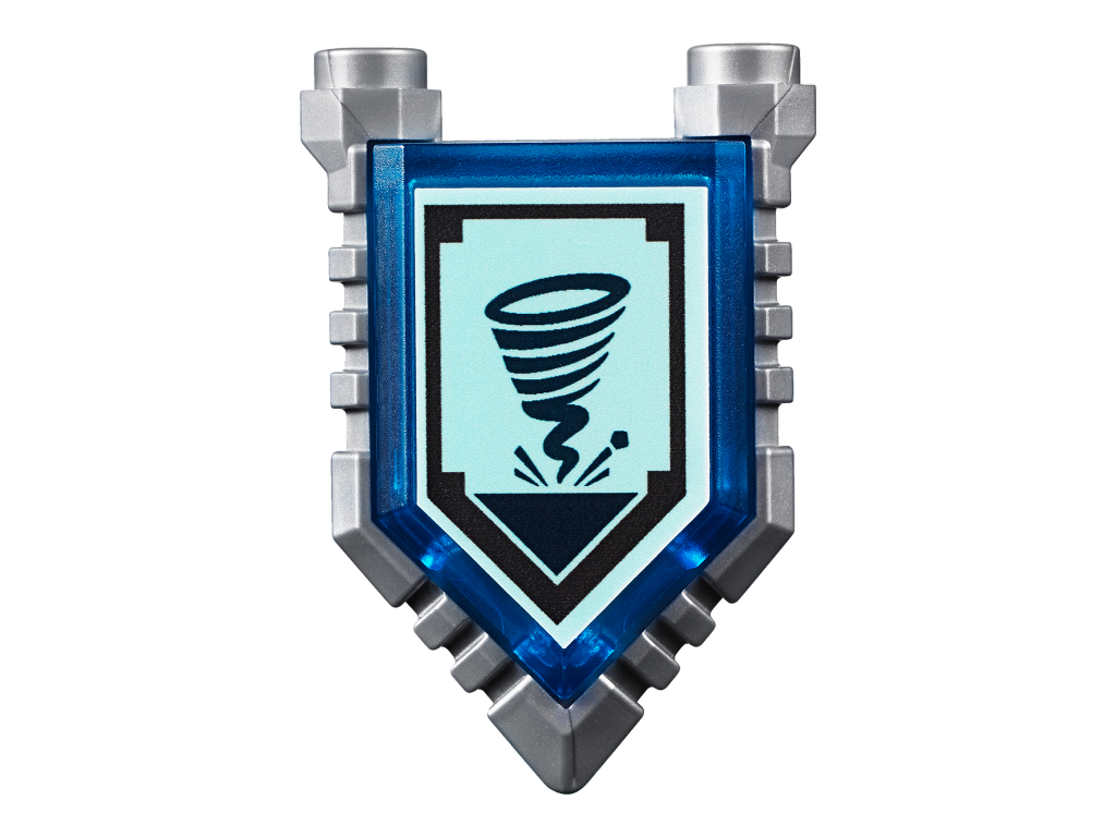 | 1 X Tile, Modified 2 x 3 Pentagonal with Nexo Power Shield Pattern - Sword Tornado | Trans-Dark Blue |   |  |