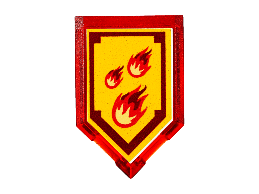 | 1 X Tile, Modified 2 x 3 Pentagonal with Nexo Power Shield Pattern - Incinerate | Trans-Red |   |  |
