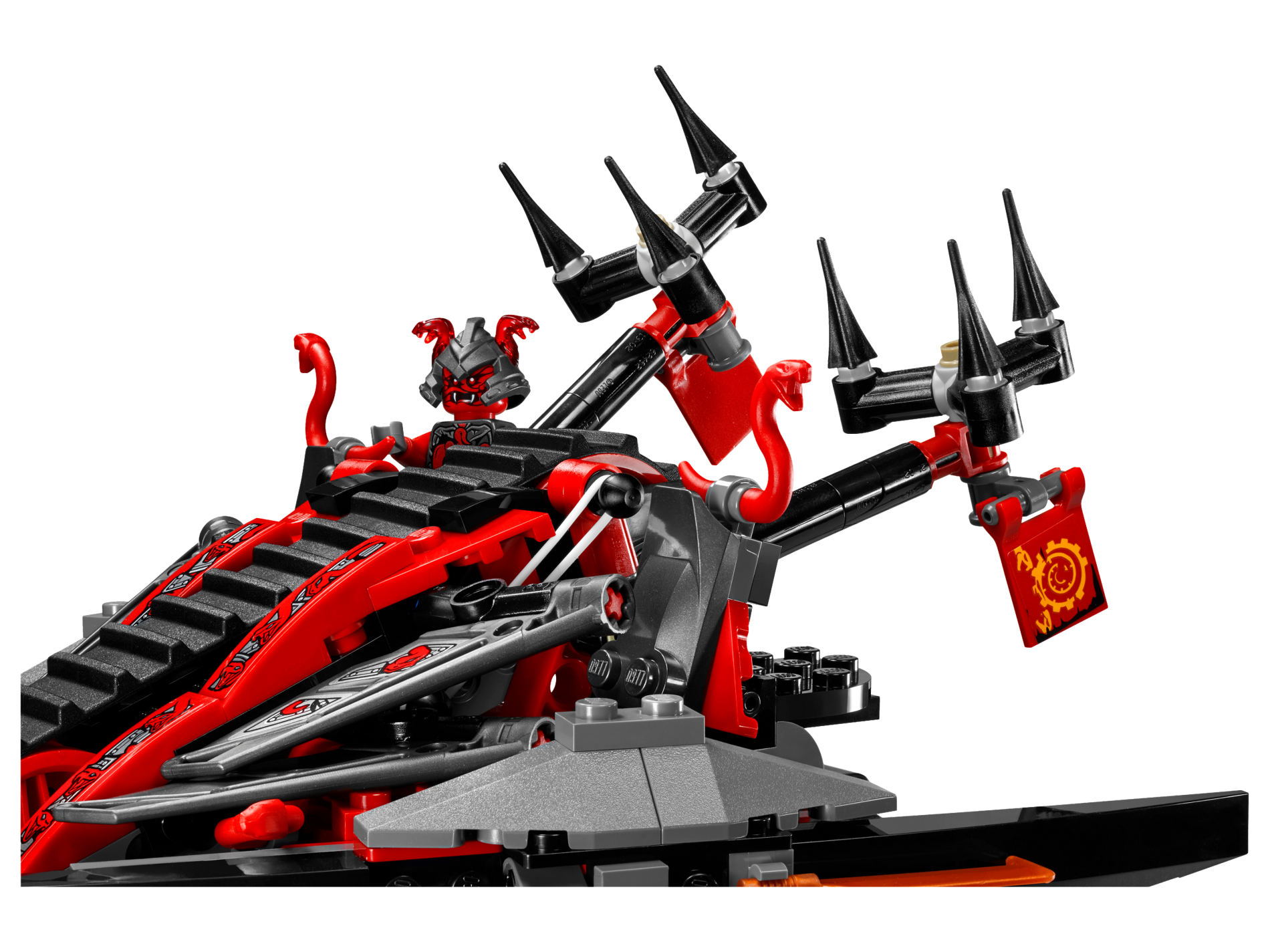 | 1 X Minifig, Weapon Sword with Geometric Snake and Diamond Shaped Hilt and Trans-Red Jagged Blade Pattern | Pearl Dark Gray |   |  |
