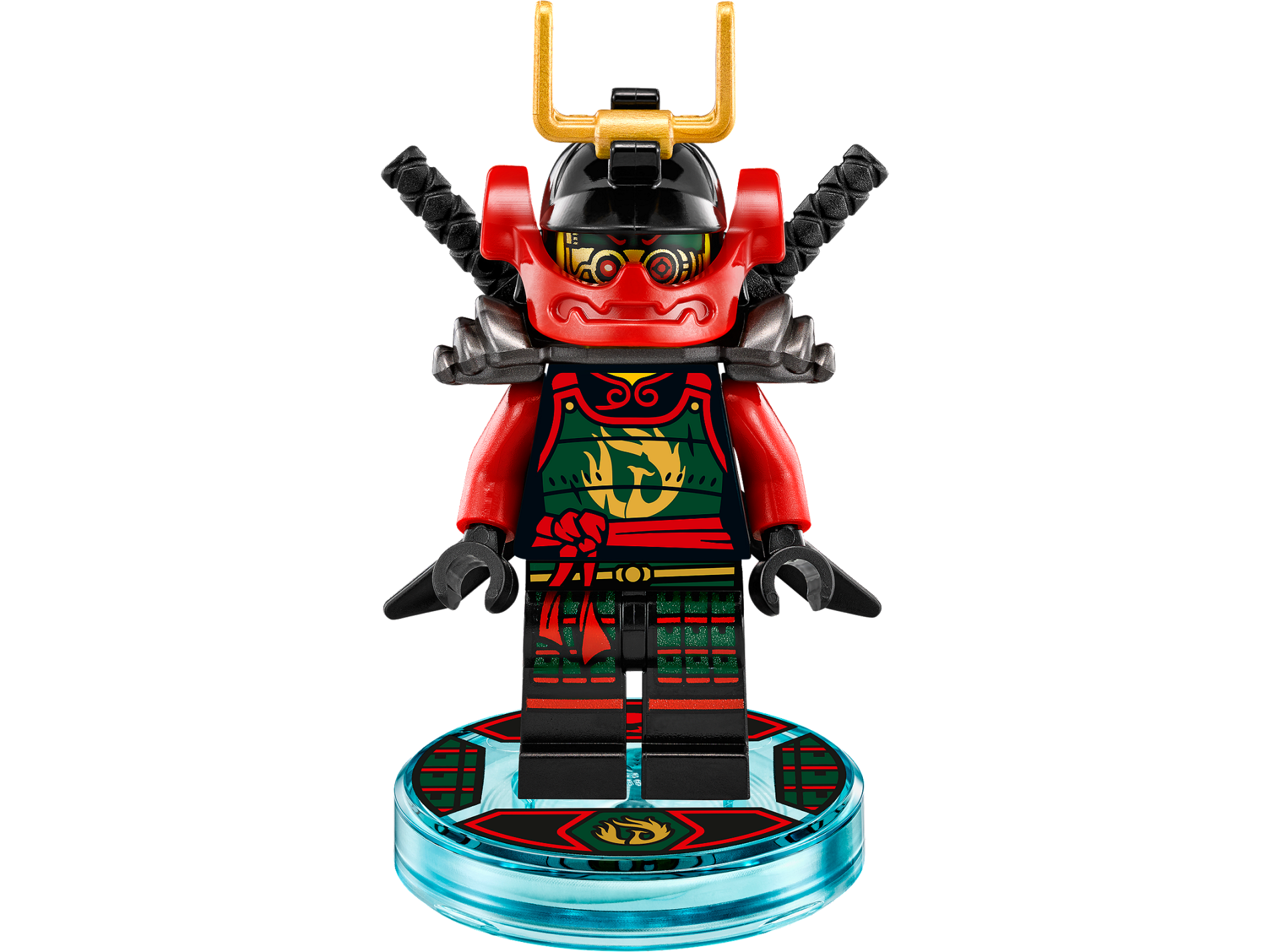 | 1 X Dimensions Toy Tag 4 x 4 x 2/3 with 2 Studs for Nya #34 with Gold Nya Sybmol and Red Ninja Symbol Pattern | Trans-Light Blue |   |  |
